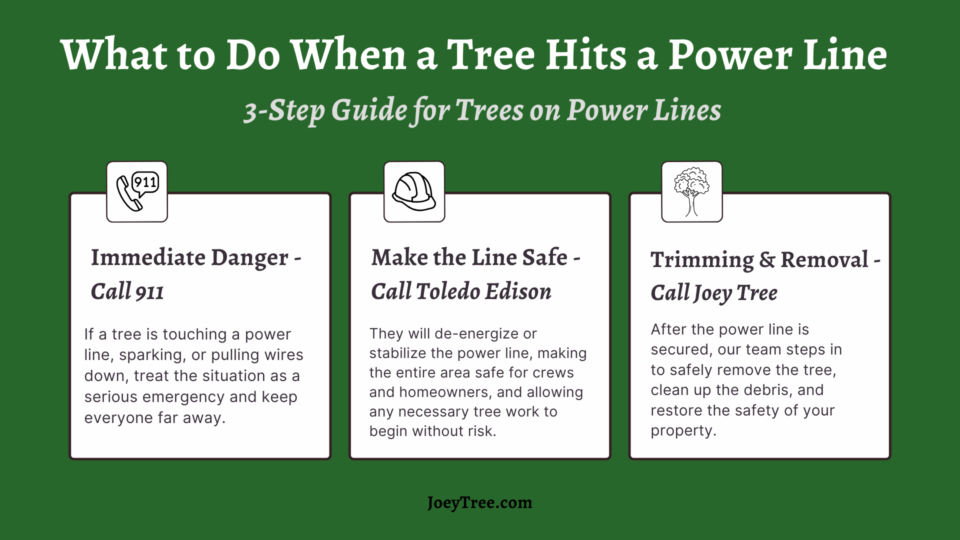 If a tree in your Sylvania side yard is starting to lean slightly toward the lines but hasn’t touched them yet, that’s a “call Joey Tree first so we can stop a problem before it becomes an emergency” situation.